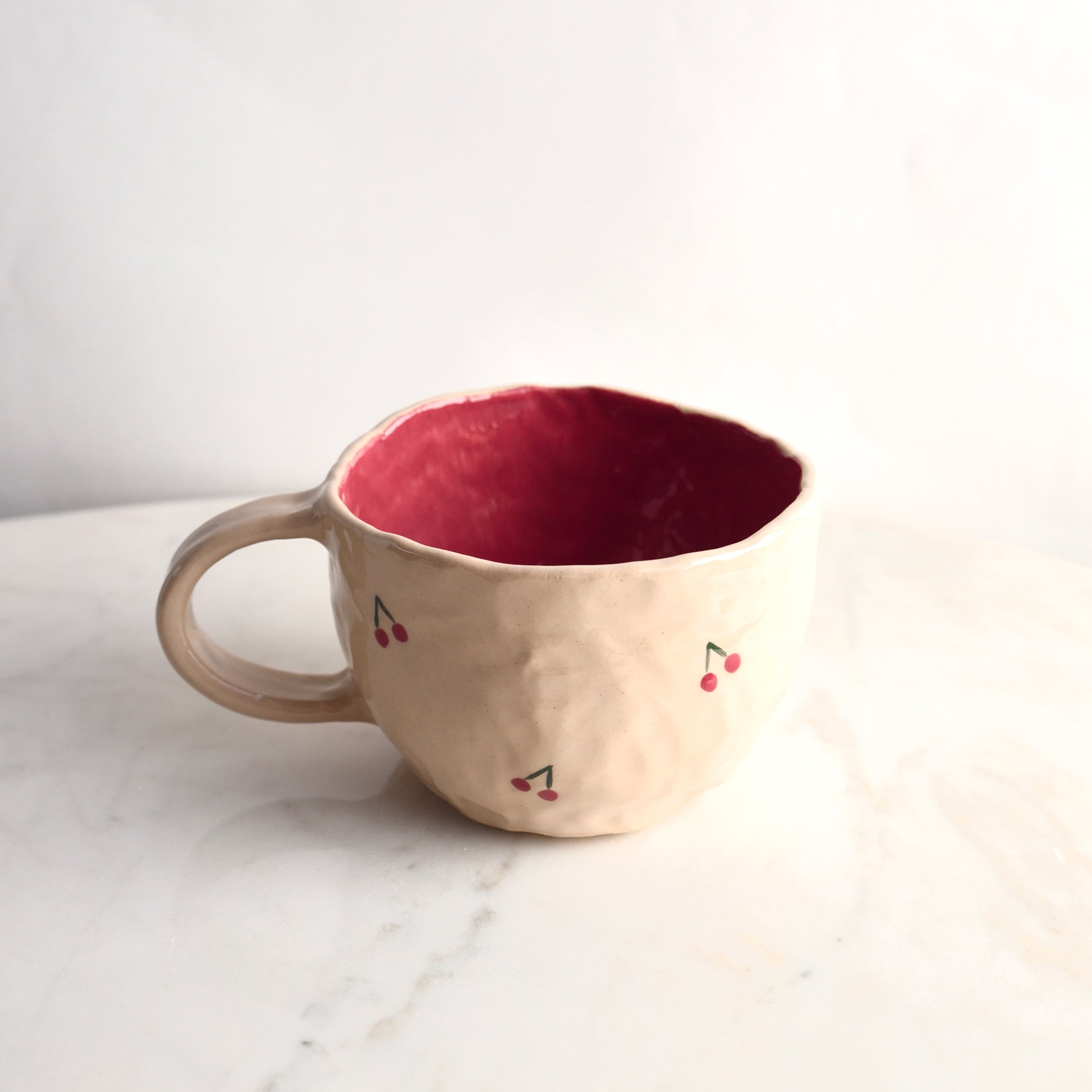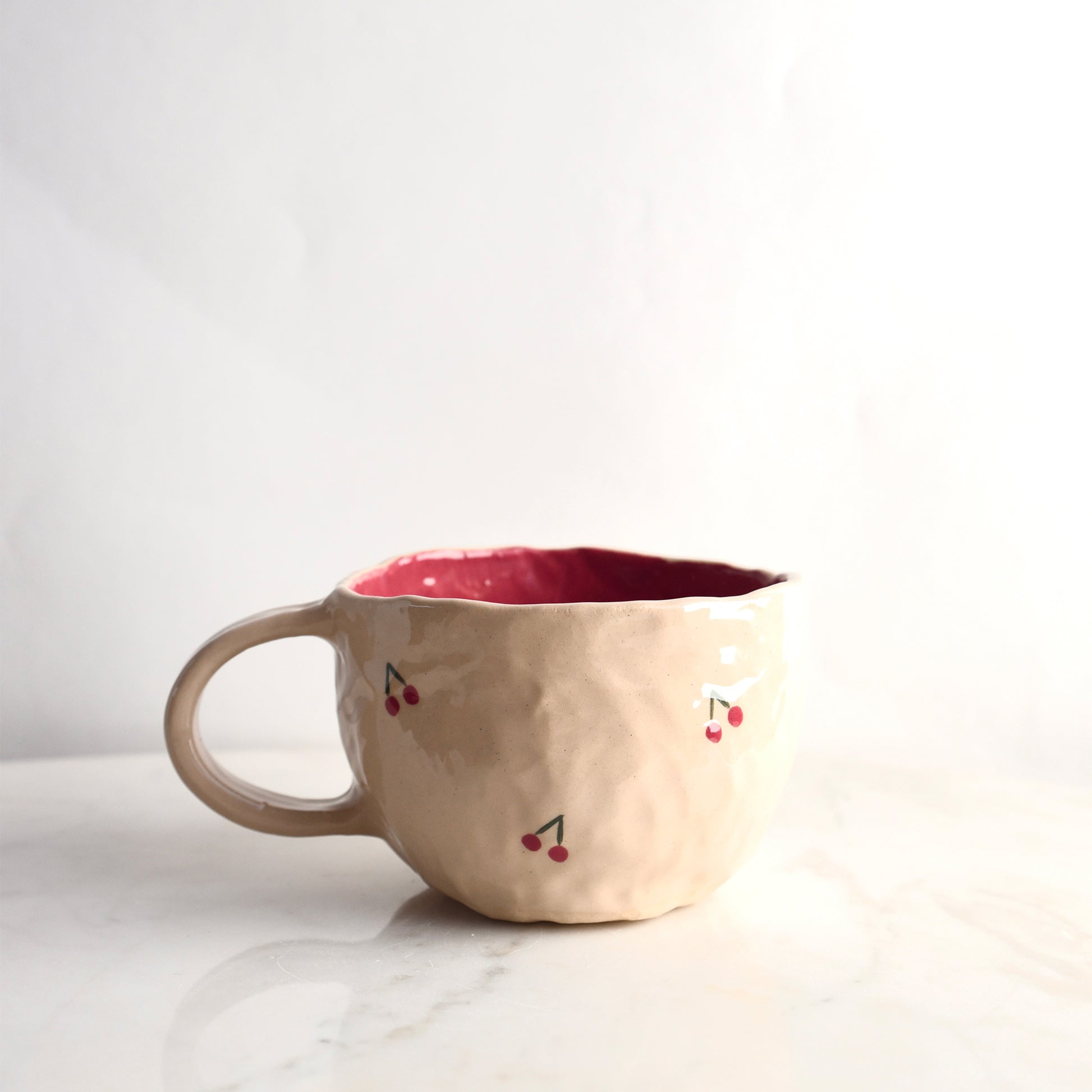 Begin de dag goed met deze handgevormde pinch mok. De organische vorm ligt heerlijk in de hand en de kleine met zorg geschilderde details maken elke mok uniek. Elke mok heeft subtiele oneffenheden die de charme van handgemaakt keramiek benadrukken. Het duurzame steengoed houdt je drankje langer warm. Dit wordt al snel je nieuwe favoriete mok.